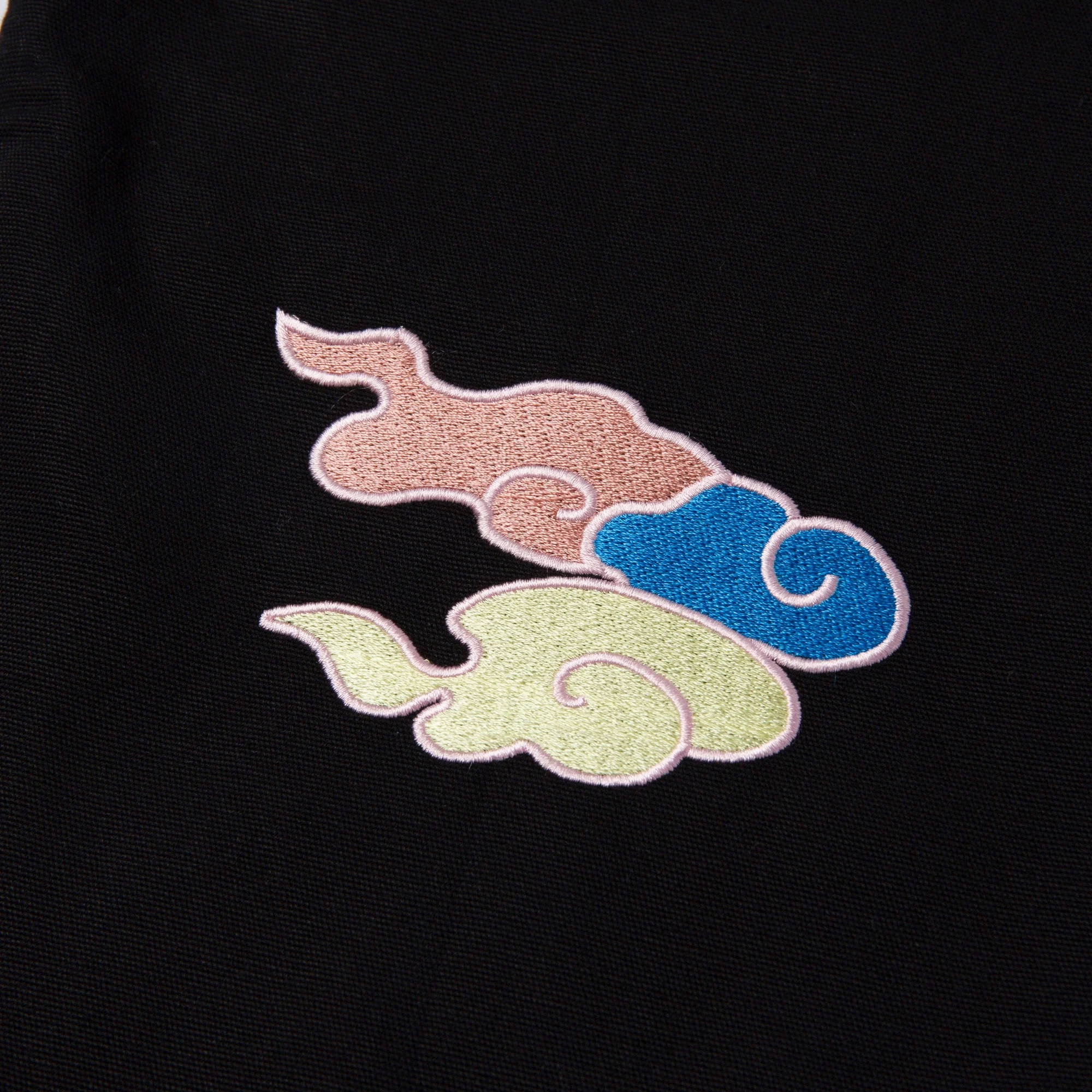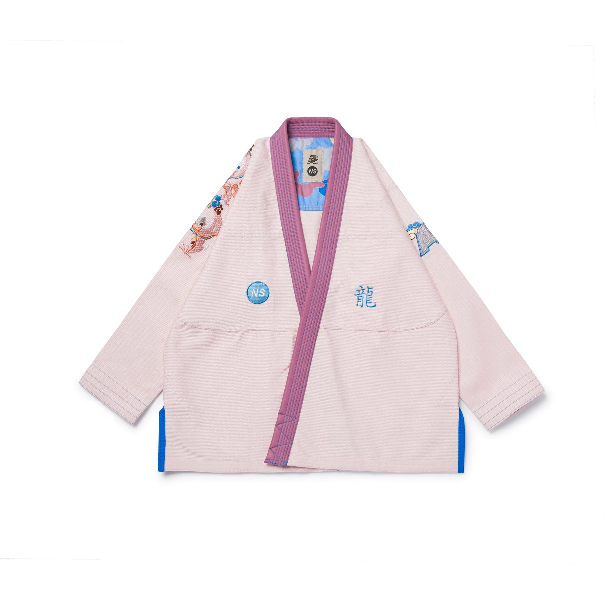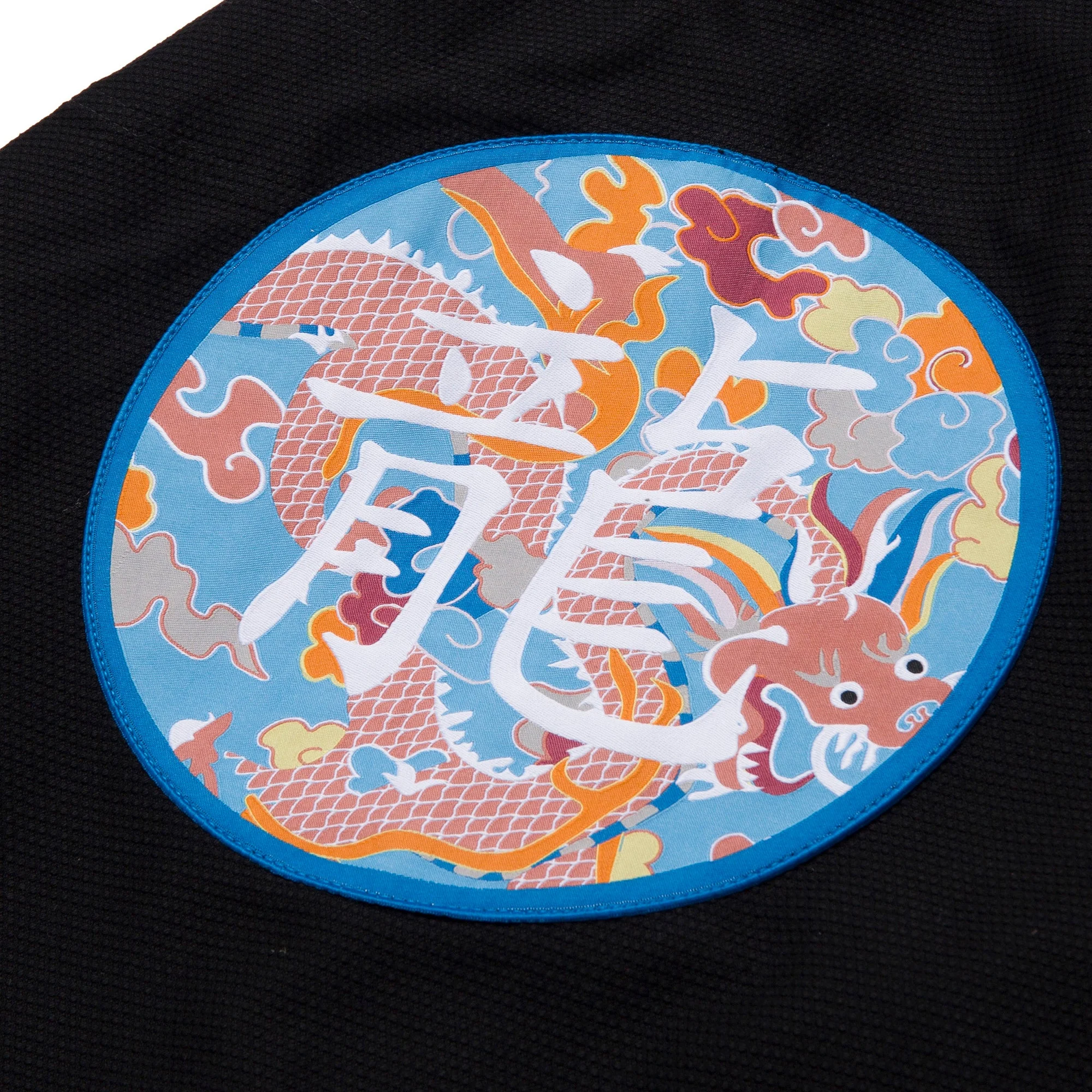 Design: Limited-edition black gi with peach, blue, lavender, and orange dragon embroidery