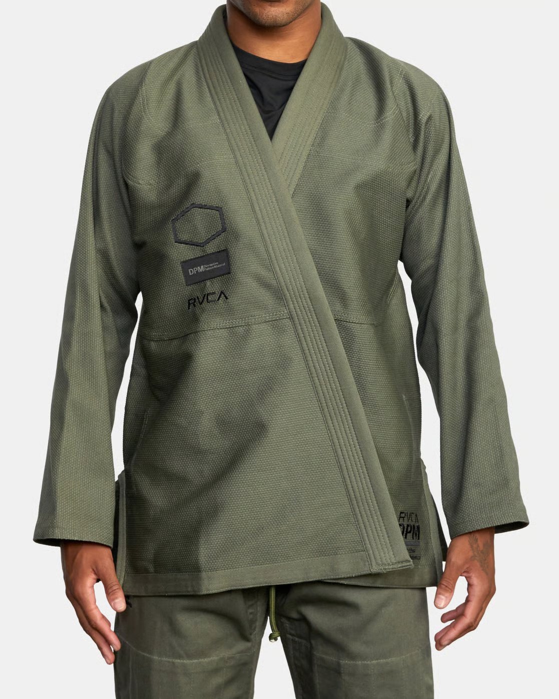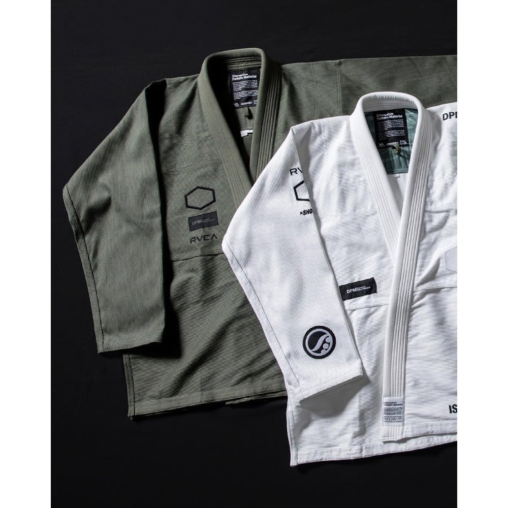The BJJ RVCA Gi boasts a DPM camo pattern, merging military-inspired disruption with BJJ grit. For example, it’s available in olive and white, offering subtle yet bold appeal. Additionally, custom RVCA x Shoyoroll embroidery graces the sleeves, while woven labels showcase artistry. Furthermore, the one-piece jacket eliminates back seams for fluid movement. Likewise, an EVA foam collar ensures comfort during rolls. Thus, this gi, crafted by Shoyoroll’s BJJ line, is a functional masterpiece that elevates style.