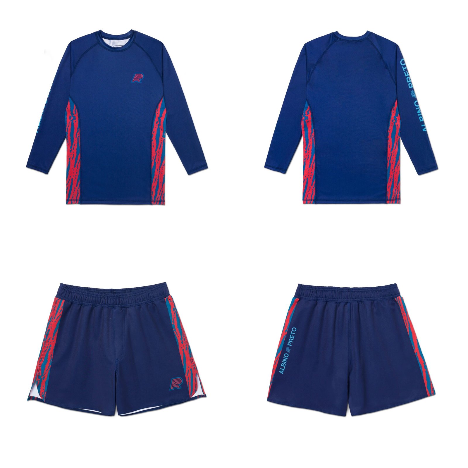 | Albino & Preto Wrasse LS & Shorts | Polyester/Spandex | Compression, ergonomic | $$ | Navy minimalist | ✅ |