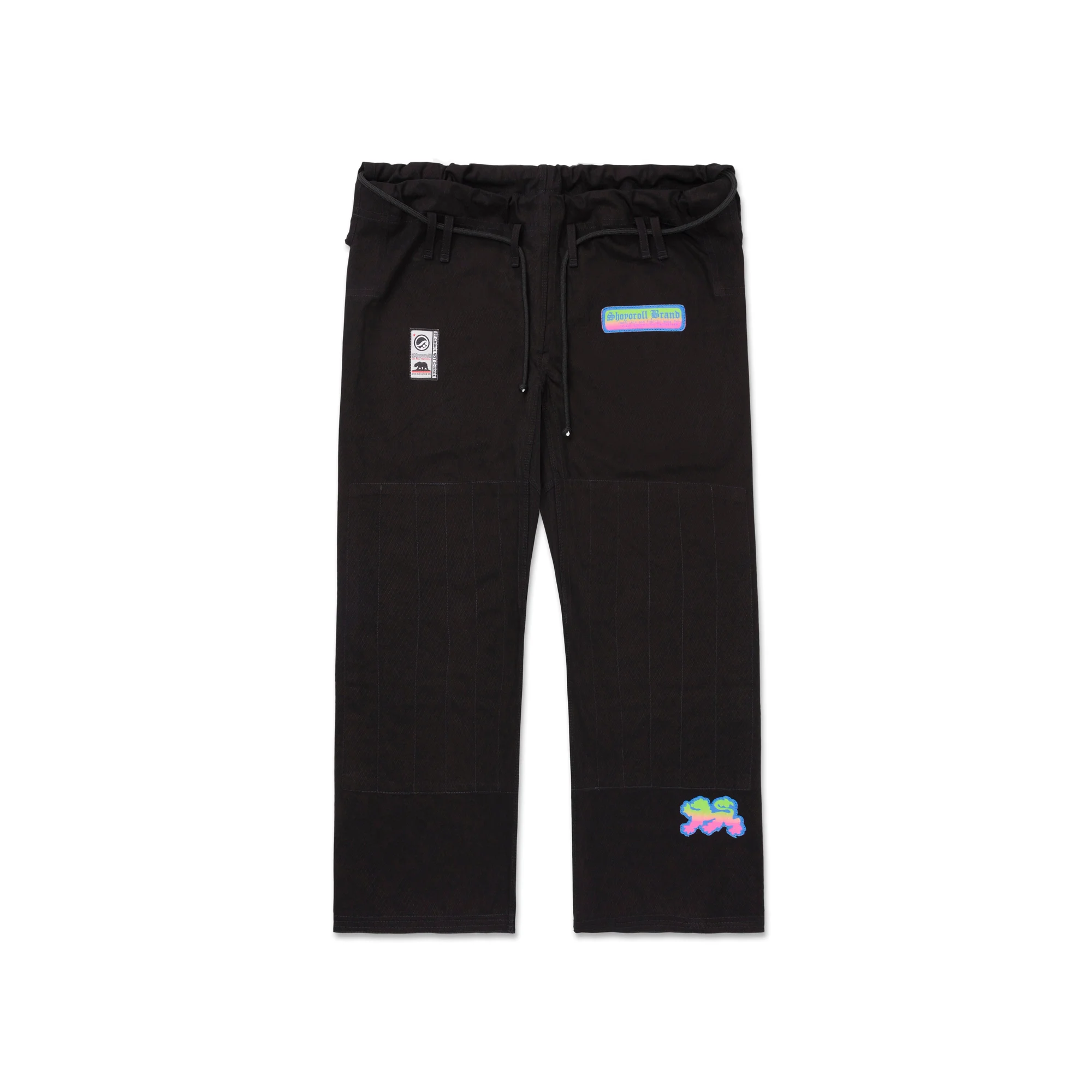 - Silhouette and Branding: Inspired by the Retro Competitor line, the gi has a tailored, athletic fit with reinforced stitching at high-stress points like the collar, cuffs, and hems. Additionally, embroidered Shoyoroll logos on the chest and lapel maintain the brand’s premium aesthetic. The gradient patches add a relaxed, artistic touch yet keep the look professional.